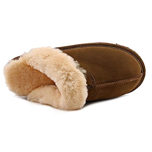 Product DescriptionR classic with a cow suede or shimmer luxe leopard fabric, full sheepskin collar, lining and footed, lightweight molded Eva outsole.0