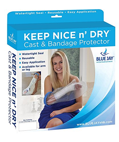 Studio : Complete Medical Manufacturing Group Publisher : Complete Medical Manufacturing Group Binding : Health and Beauty Product Description Blue Jay An Elite Healthcare Brand carefully crafted the "Keep Nice n' Dry" cast and bandage protector with durable PVC liners and latex-free diaphragm so you can reuse it over and over again, unlike a plastic bag. The cast and bandage protector has a very easy application, you are able to slip it on and off with a single hand. This will protect and keep the selected area dry in baths, showers, and even outdoor weather conditions. 0