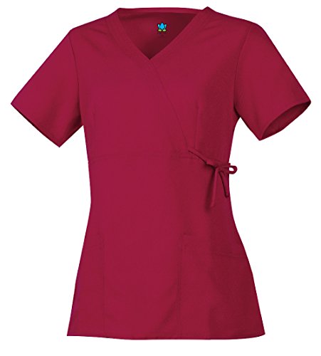 Gravity By Maevn Women's Mock Wrap Solid Scrub Top With Side Tie