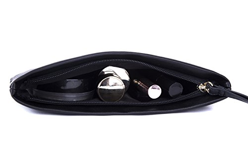 -. Brand : The Lovely Tote Co. -. ClothingSize : One -. Color : Black -. Department : womens -. Feature : Wipe Clean Only / Understated rectangular wristlet featuring zippered top and logoed hardware / 9.75" L x 0.75" W x 5.25" H / Wristlet strap -. Model : AM-077-PU-BLK -. ProductGroup : Apparel -. ProductTypeName : HANDBAG -. Size : One Size -. Title : The Lovely Tote Co. Women's Top Zip Wristlet Bag Classic Purse Clutch Black