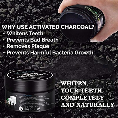 OUR CERTIFICATION: Our products have been FDA certified.100% natural and organic.And you can use it more safely. INGREDIENTS: ORGANIC COCONUT ACTIVATED CHARCOAL, ULTRA SOFT SILICONE, CALCIUM CARBONATE, ORGANIC DL- MENTHOL, ORGANIC STEVIOSIDE FUNCTION: -Whiten your teeth completely and naturally. Especially for people who with black teeth and yellow teeth caused by smoking, tea drinking, coffee and wine, Remove tartar and peculiar smell, Leaving your mouth clean and fresh. -Keep your gingival more healthy. Long-term use of this product shall help to keep periodontal problems away. -Also can use together with the foam toothpas. -Let you show perfect and confidence smile everyday. HOW TO USE: -Wet your toothbrush and gently shake off excess water, then dip into some powder. -Gently brush your teeth for two minutes. -Rinse mouth and brush thoroughly with water. -One or twice a week.Insist on about 30 days, you can achieve perfect effect. NOTE: -Do not swallow and -Keep out of reach of children. -If for any reason irritation occurs during use, discontinue use. Package includes: 1 bottle x Charcoal Tooth Powder(60g) 0 |