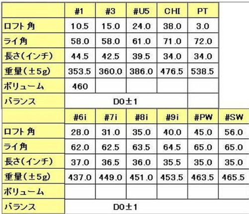 클럽 무게:#1/353.5g #3/360g #UT/386g #6i/437g #7i/449g #8i/451g #9i/453.5g #PW/463.5g #SW/465.5g PT/538.5g