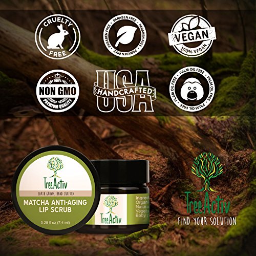 -. Title : TreeActiv Matcha Anti-Aging Lip Scrub | Natural Exfoliation for Dry, Chapped Lips | Exfoliate, Heal, Hydrate & Protect | Lip Moisturizer for Men & Women | Lip Sugar Scrub | Reduce Wrinkles