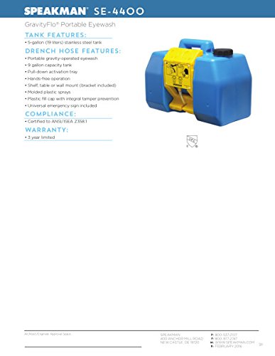 Speakman GravityFlo SE-4400 9-Gallon Portable Eyewash