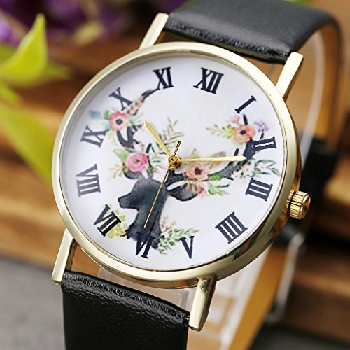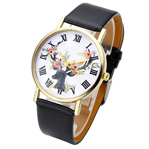 -. Binding : Watch -. Brand : Top Plaza -. Department : Womens -. Feature : Band size: 6.5-8.2" fit most wrists. / Material: PU Leather/Alloy / Not water resistant, please don't get wet. / Roman numberal scale moose head dial, beautiful and perfect Christmas gift for families and friends. / Each order comes with a grey velet bag P.R.Inted Top plaza. -. Label : Top Plaza -. Manufacturer : Top Plaza -. Model : ATPUS62130 -. MPN : ATPUS62130 -. PartNumber : ATPUS62130 -. ProductGroup : Watch -. ProductTypeName : WATCH -. Publisher : Top Plaza -. Studio : Top Plaza -. Title : Top Plaza Roman Numeral Scale Moose Head Dial Golden Alloy Case Leather Band Christmas Gift Analog Quartz Wrist Watch-Black