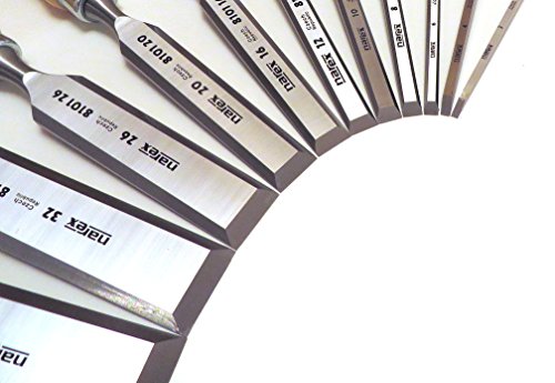 Narex 12 Piece Chisel Set Containing 3 mm (1/8") 4 mm (3/16"), 6 mm (1/4"), 8 mm (5/16"), 10 mm (3/8") 12 mm (1/2"), 16 mm (5/8"), 20 mm (11/16") , 26 mm (1 1/16"), 32 mm (1 1/4"), 40 mm (1 5/8") and 50 mm (2") 810103-50