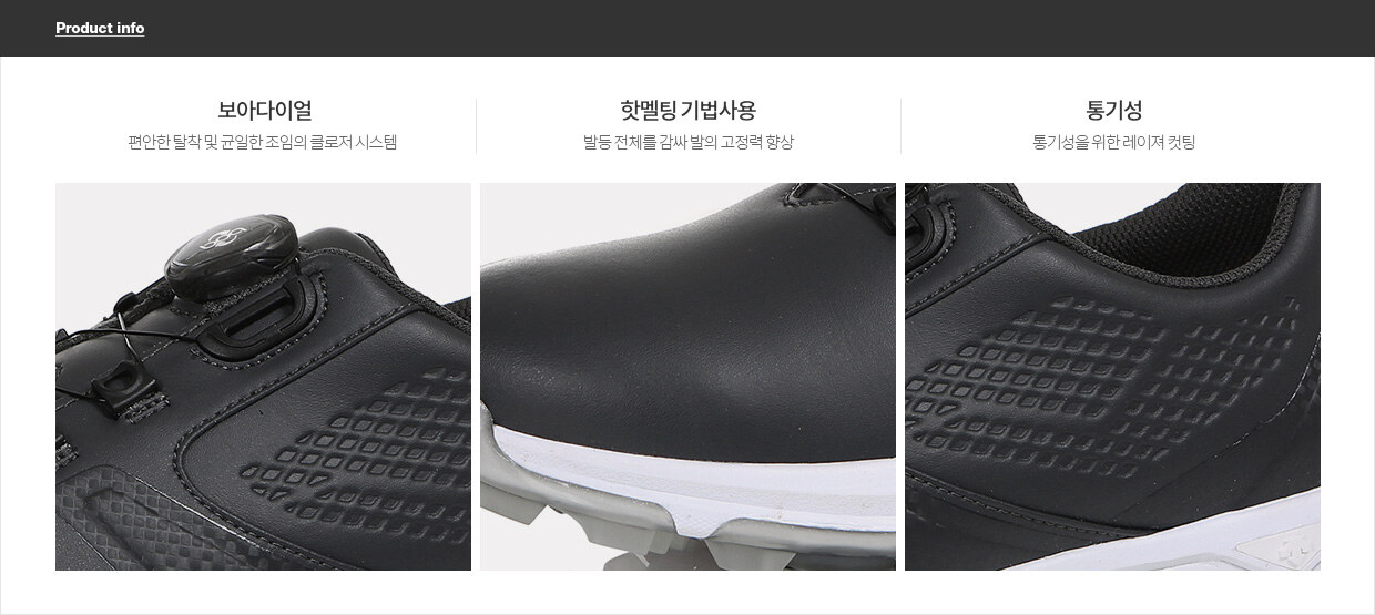 | 소재 | 겉감재료:합성피혁100% 안감:메쉬(폴리에스터100%) 창재료:파일론+TPU |
