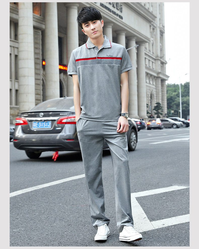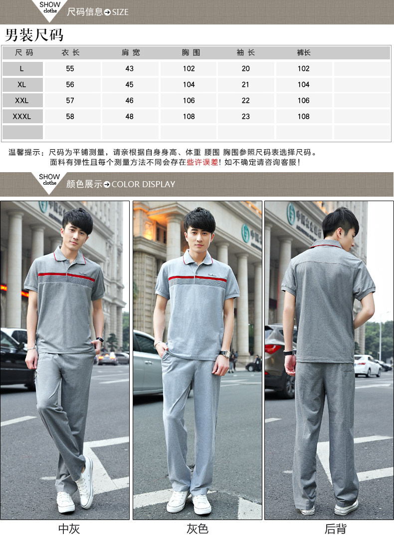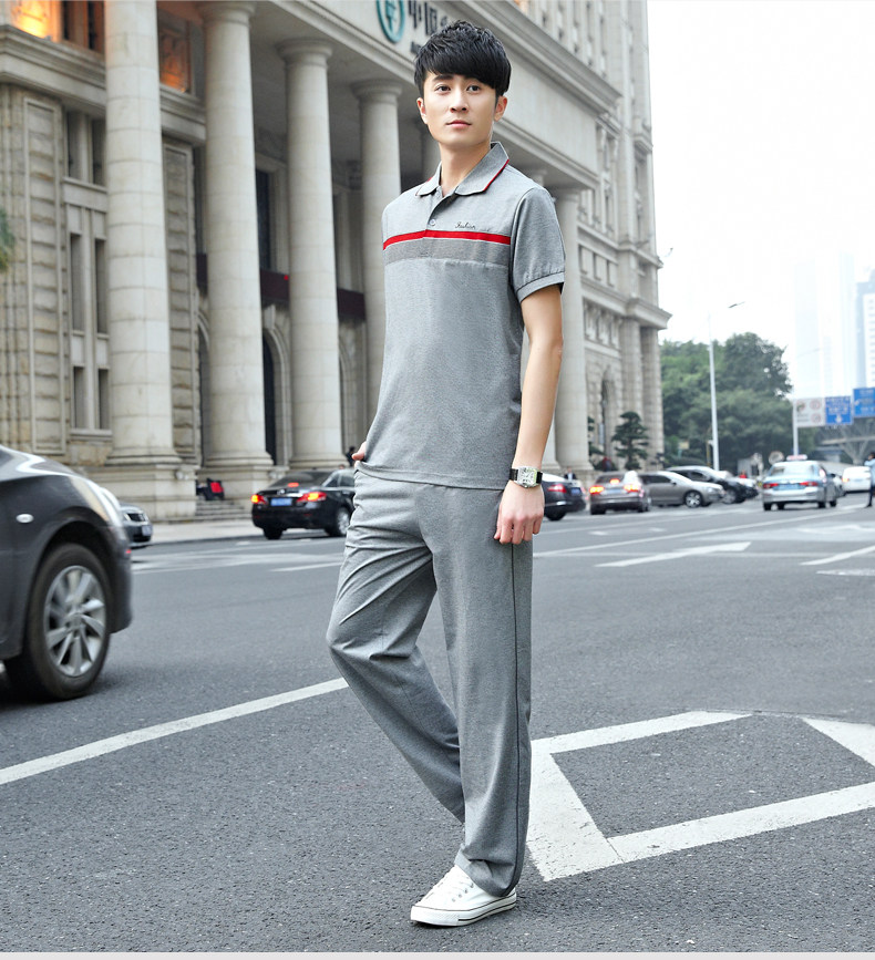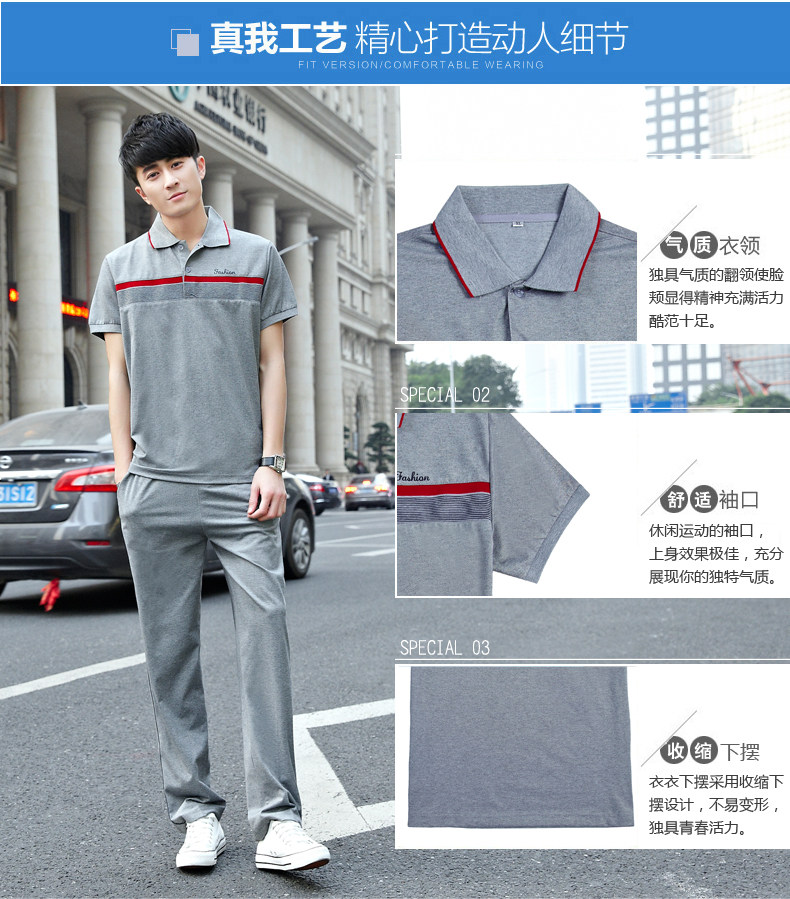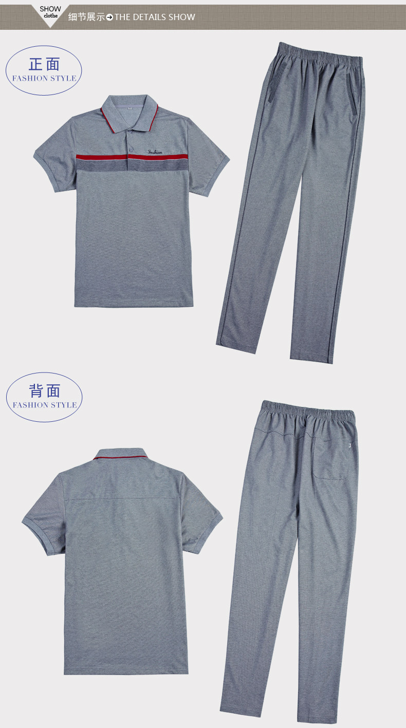 夏季男士运动套装中老年短袖长裤跑步晨练运动服大码休闲服男 ?