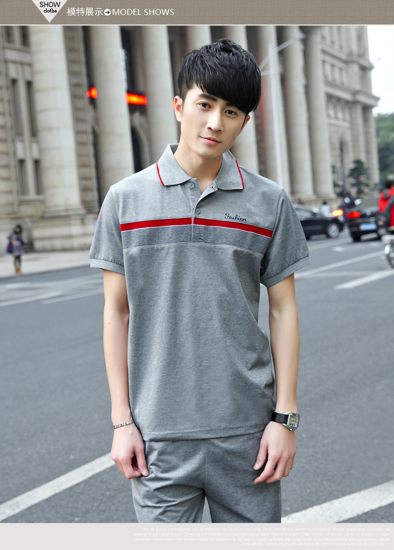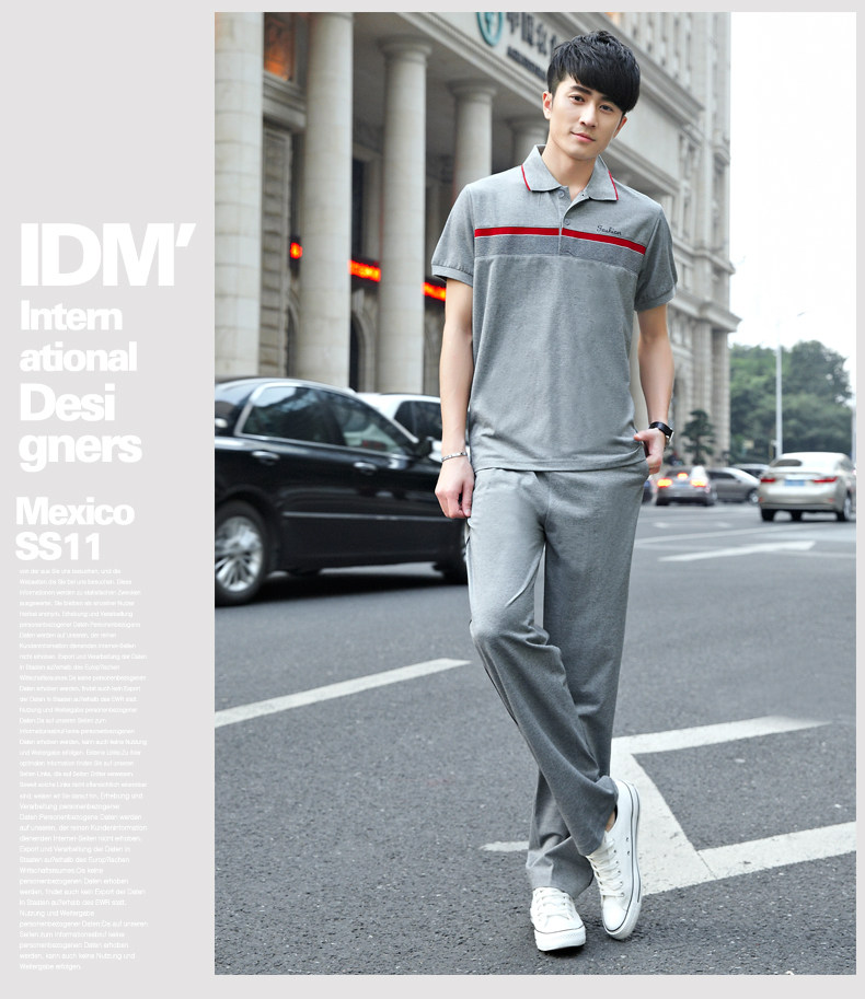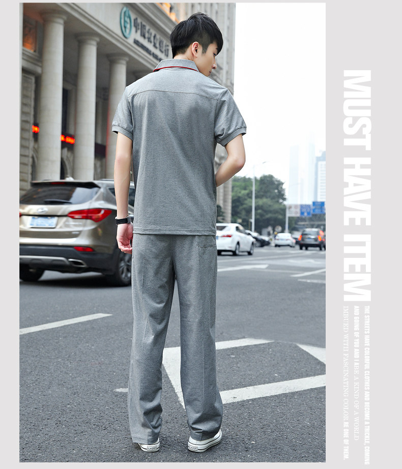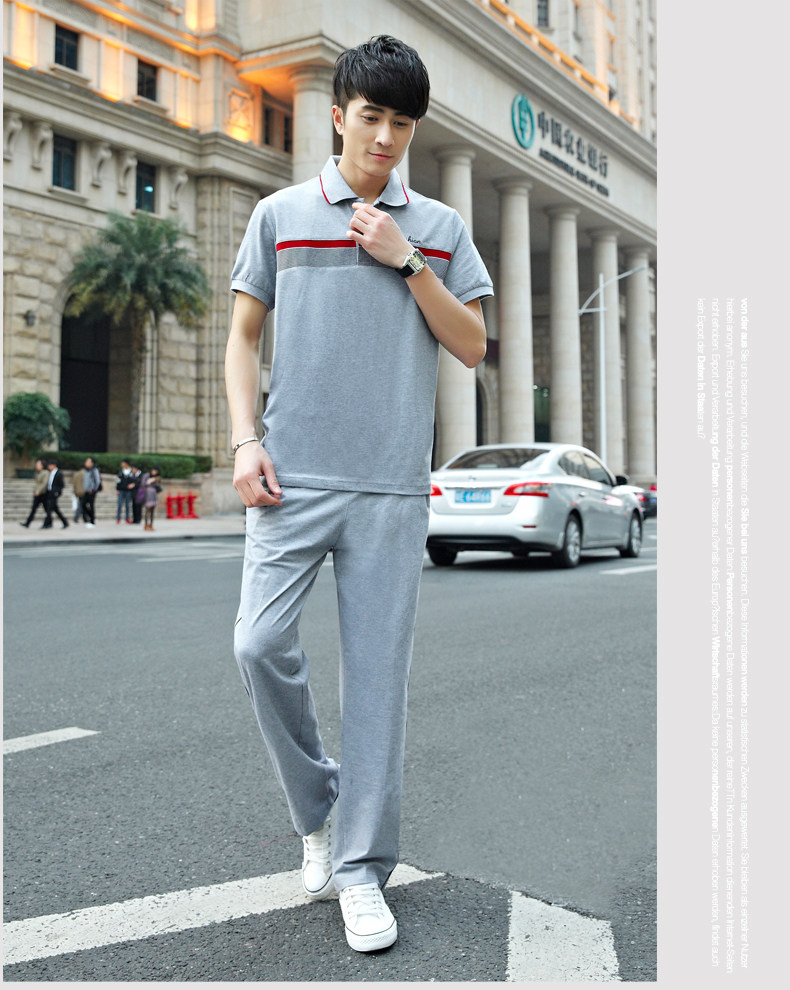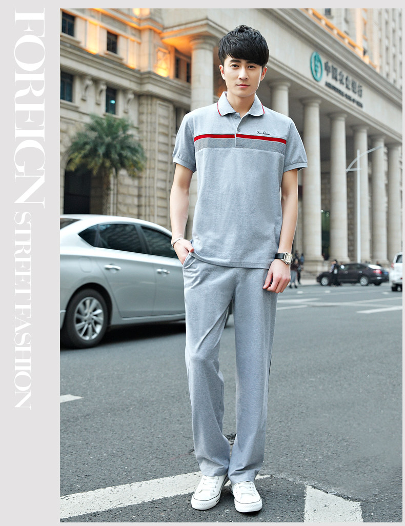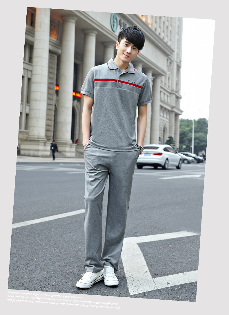 夏季男士运动套装中老年短袖长裤跑步晨练运动服大码休闲服男 ?