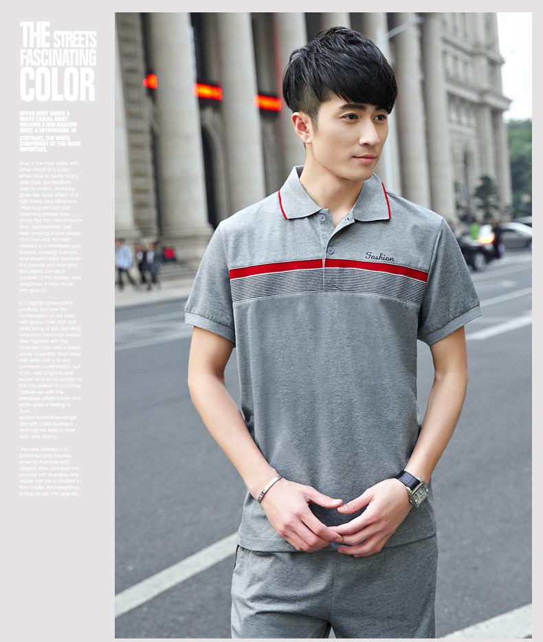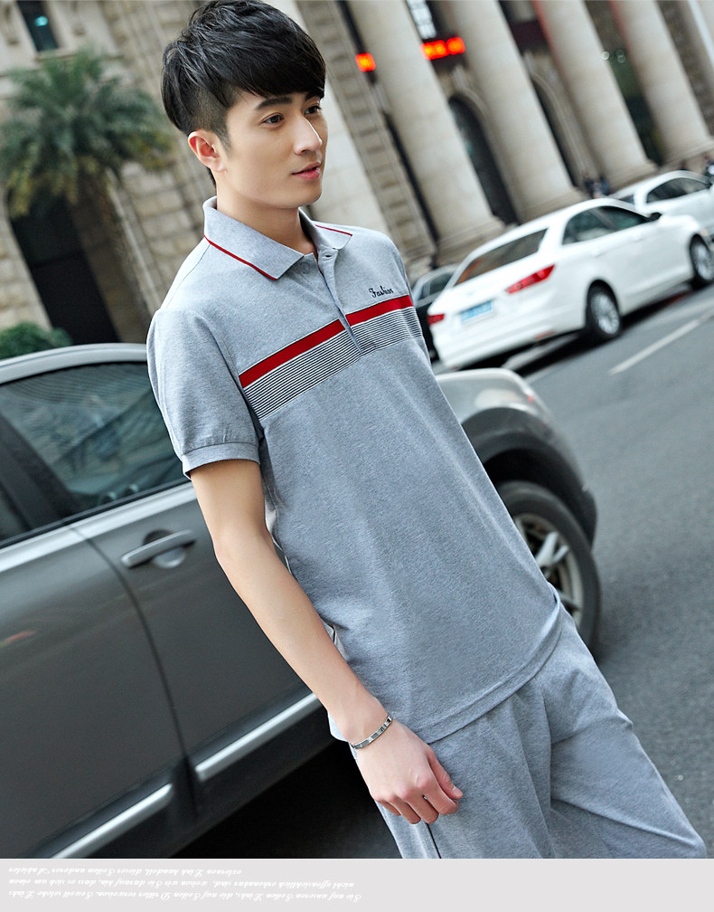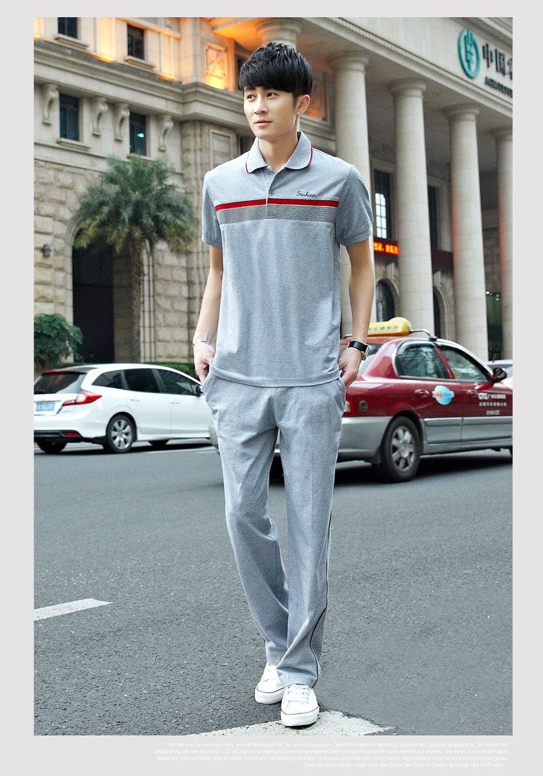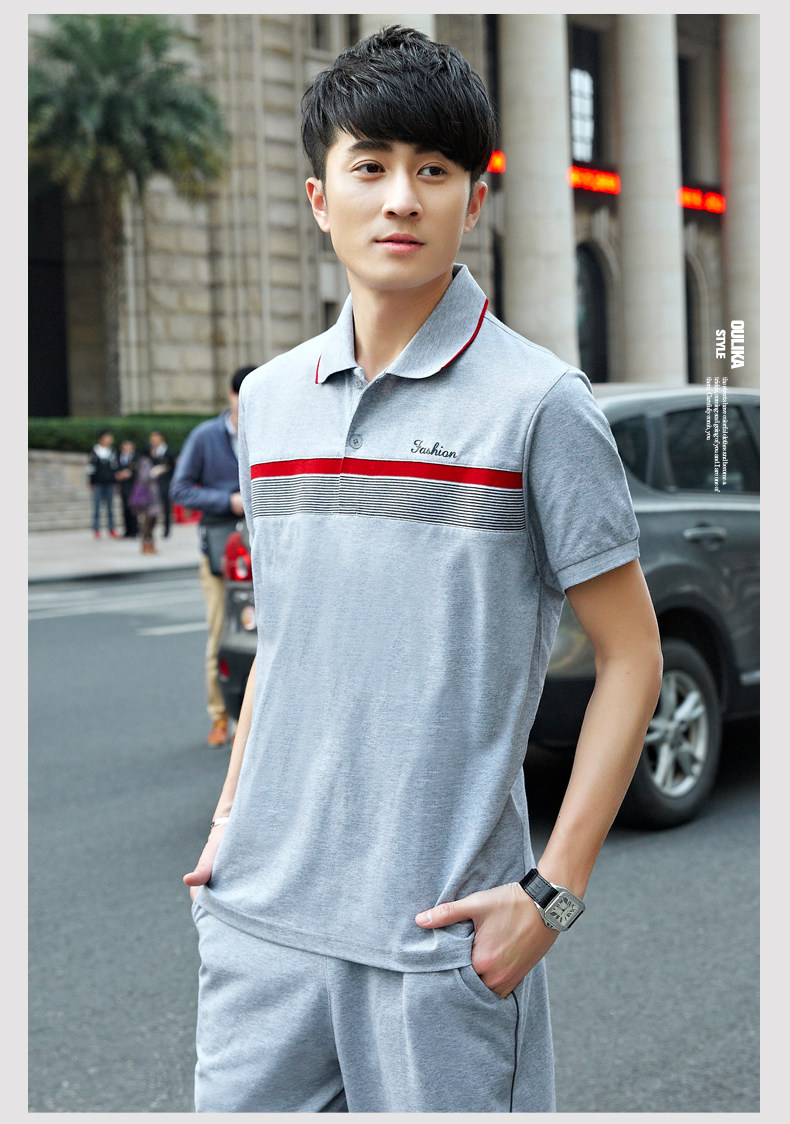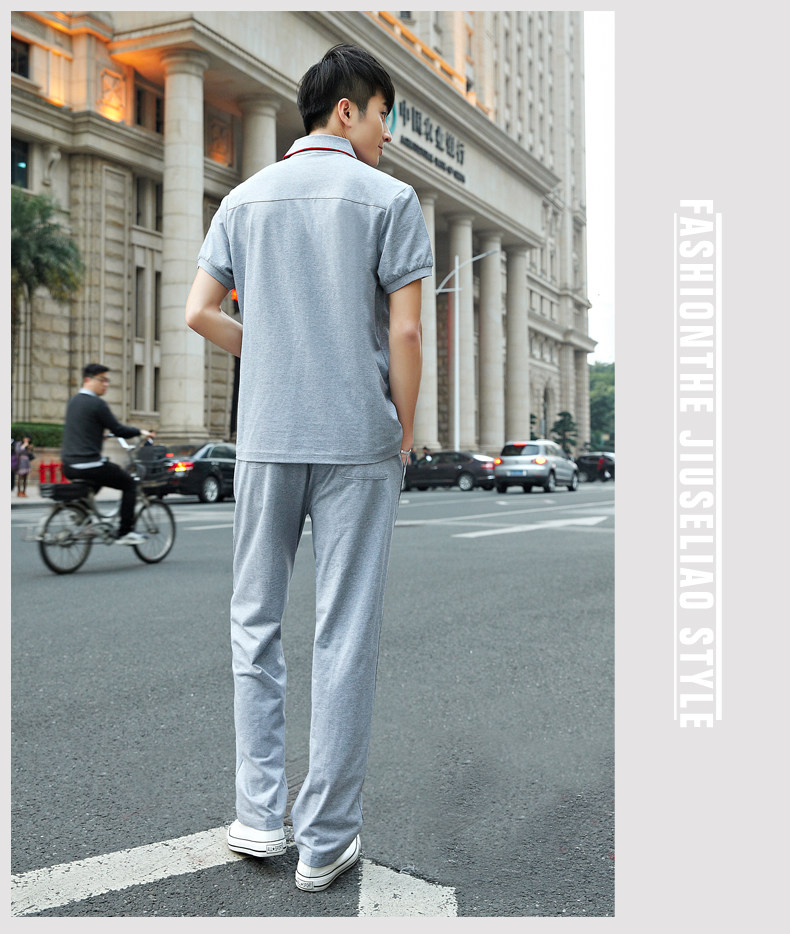 夏季男士运动套装中老年短袖长裤跑步晨练运动服大码休闲服男 ?