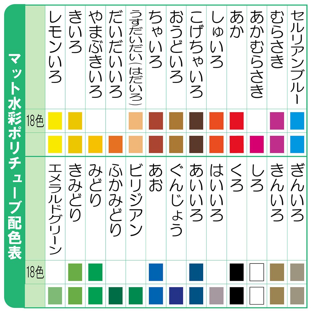 18 color matte watercolor (12ml) poly in tube (japan import)