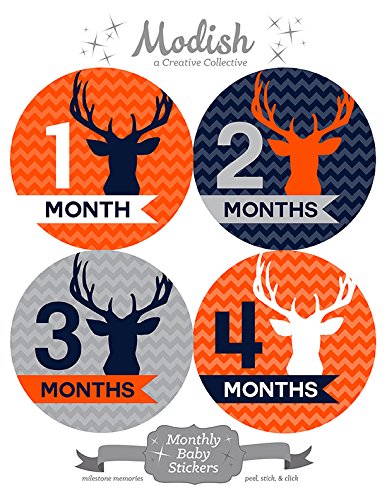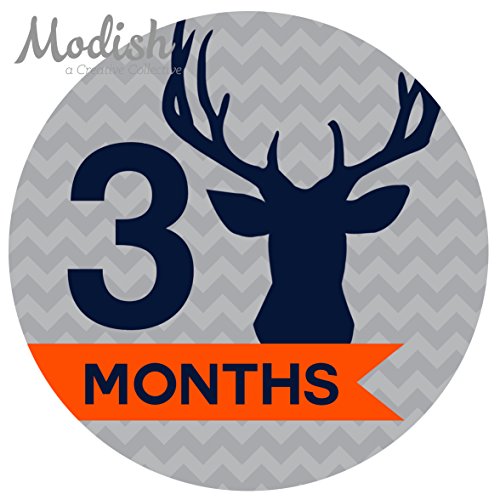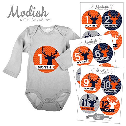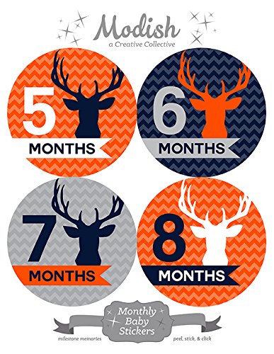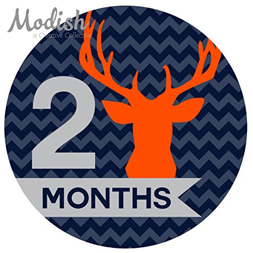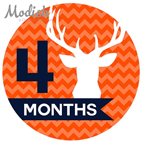 12 Monthly Baby Stickers, Deer, Antlers, Boy, Baby Belly Stickers, Baby Month Stickers, First Year Stickers Months 1-12, Chevron, Orange, Hunter...