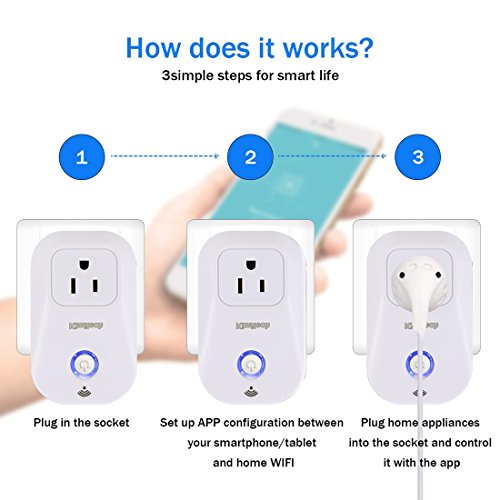 COMPATIBILITY: Both IOS and Android are available for this Wi-Fi plug. No hub required. Works with Amazon Alexa and Google Assistant for voice control.