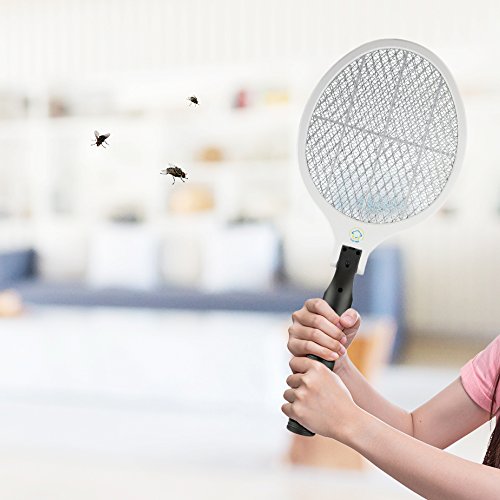 Bug Zapper Fly Swatter Racket – Indoor and Outdoor Electric Insect, Bee, Wasp, Mosquito, Fly, Gnat and Stinger Bug Killer and Repeller - Takes Just One Swing To Zap with 3-Layer Safety Mesh