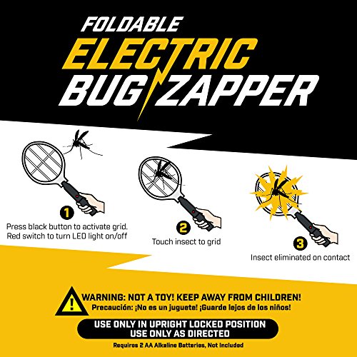 KILL BUGS INSTANTLY: This bug swatter racket kills insects on impact from force and electric shock in just one swat; This powerful, silent fly and insect killer will keep pests away.