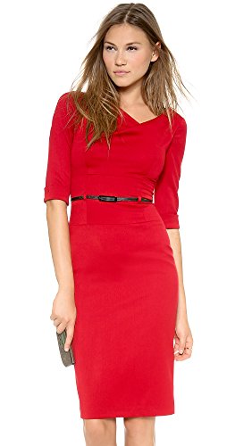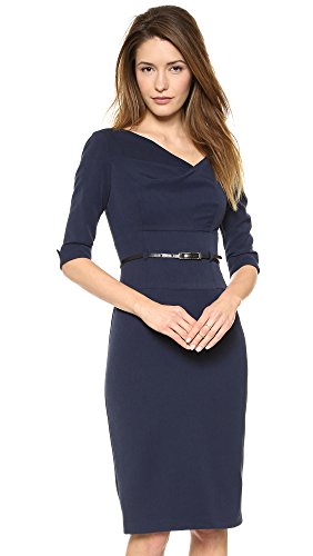 Scoop-back sheath dress with asymmetrical drape neck featuring cuffed sleeves and vent at back Black leather belt included Brand : Black Halo Item model num : 203326 EAN : 0842748185690