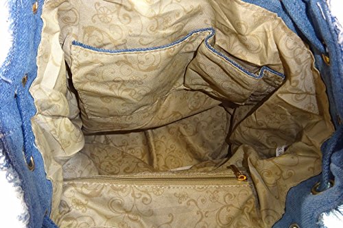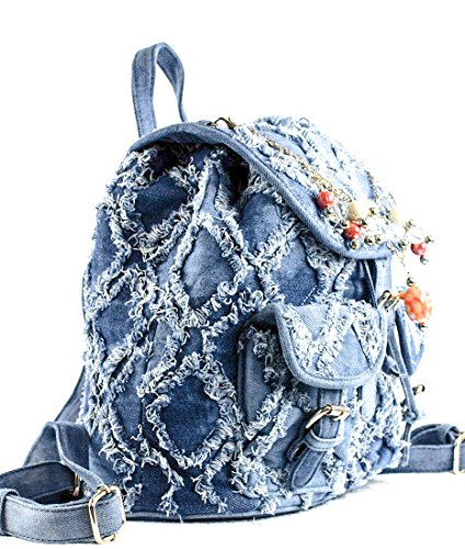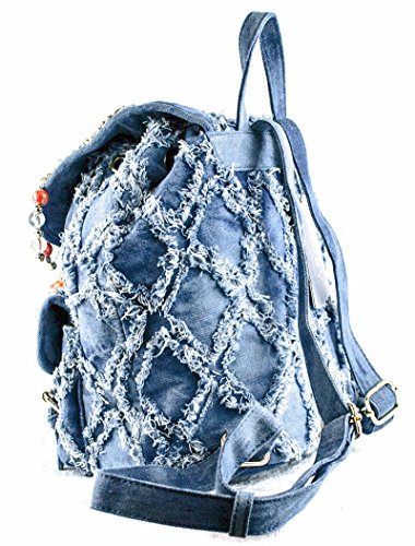-. Feature : Material:Denim, Faux Leather, Bag Length:11.5, Color:Blue, Closure:Drawstring / Brand:Ruby Collection, Bag Height:12, Size:Medium / Bag Depth:7, Style:Backpack Style, Pattern:Denim