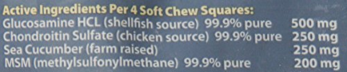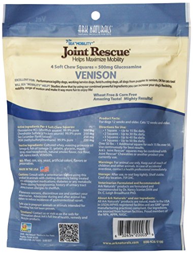 -. Feature : 4 Soft Chew Squares = 500mg Glucosamine Excellent For:Performance/agility dogs, working/service dogs, field/hunting dogs, all dogs from puppies to seniors / Ark Naturals