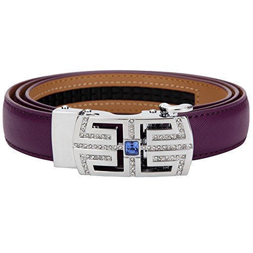 -. Binding : Apparel -. Brand : XIANGUO -. Color : Red -. Department : womens -. Feature : The belt is unique and designed exquisitely / It's Automatic ratchet buckle with genuine leather belt and Shining Gem / It would look perfect with jeans or a dress / Adjustable length,if the belt is too long you can cut and adjust the length / Belt Length:100cm 105cm 110cm 115cm. Width: 2.5cm -. NumberOfItems : 1 -. PackageQuantity : 1 -. ProductGroup : Apparel -. ProductTypeName : ACCESSORY -. Title : XIANGUO Women's Automatic Buckle Leather Belts
