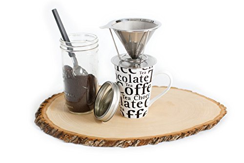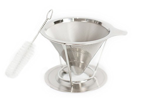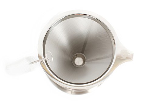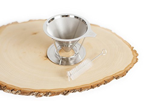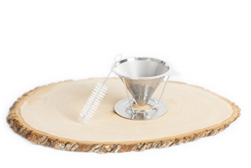 -. Brand : LC and Company -. Color : stainless steel -. EAN : 0682318999346 -. Feature : CLEAR THE CLUTTER - Get rid of your big coffee machine from the counter / GREAT TASTING COFFEE - Eco-Friendly paperless filter lets you enjoy the coffee's essential oils / Stainless steel permanent filter , double layer mesh to ensure no grounds end up in your cup / 1-2 cup capacity, comes along with directions to make a perfect brew! / BONUS - cleaning brush for quick and easy clean up that prevents clogging. -. Label : LC and Company -. Manufacturer : LC and Company -. Model : LC0018 -. MPN : LC0018 -. PackageQuantity : 1 -. PartNumber : LC0018 -. ProductGroup : Kitchen -. ProductTypeName : KITCHEN -. Publisher : LC and Company -. Size : 10cmX11.4cmX13cm -. Studio : LC and Company -. Title : Pour Over Coffee Filter - LC - Reusable - Permanent 18/8 Stainless Steel Pour Over Dripper - with BONUS Declogging Cleaning Brush -. UPC : 682318999346