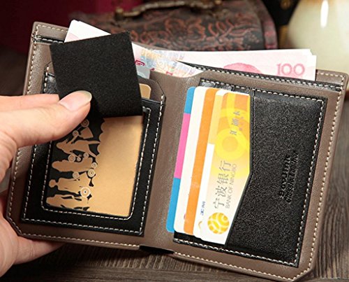 -. Feature : Material: PU leather / Size: 12cm×9.8cm×1.2cm / Leather: vintage look premium leather for a noticeable luxurious feel and unmatched durability, Longer time we use, nicer it becomes. / Convenience: small and light weight, easy to carry, slim and compact design, can fit into most pockets, you can carry the usual CARDS with you / This ID- credit card holder is great for gift giving inside Detail: Credit card inserts, window ID slim Bi-Fold flip wallet, easy to carry around