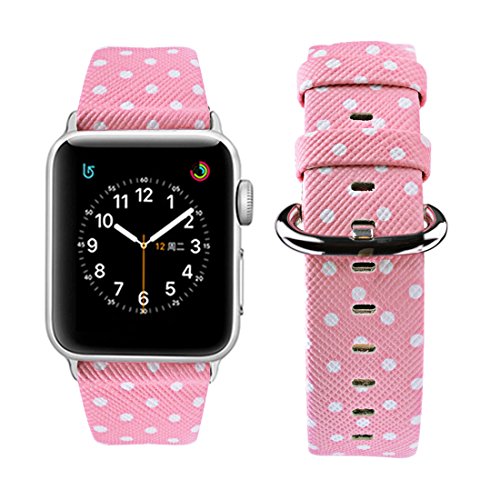 -. Feature : Application: Perfectly fit for Apple Watch 38mm Series 3/2/1 / Top quality material: outer layer with pu leather and the inner layer is made of soft genuine leather / Fashion design: classical polka dot appearance makes apple watch more novel / Easy installation: the band comes with adapters, easy to install or remove. No tool is needed / One Year Warranty: you will get full refund or replacement for any quality problem