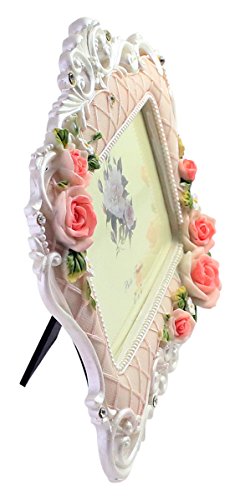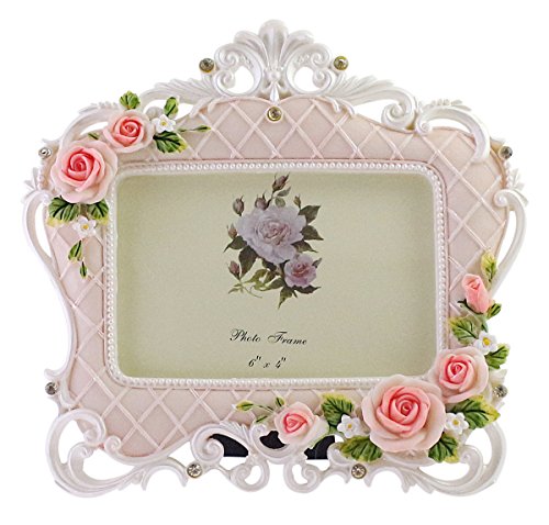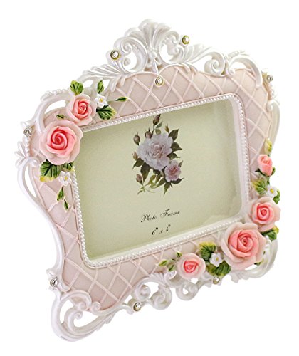 Vintage Victorian Rose Horizontal Resin Wedding Family Couple Picture Photo Frame, White & Pink - 6"x4"│Valentine's For Her