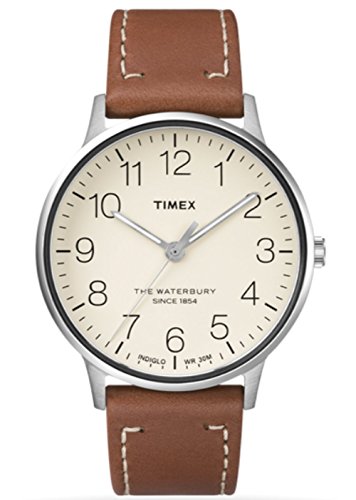 -. Feature : timex waterbury classic men's watch / tan leather strap with cream dial / case width 40MM; lug width 20MM / Indiglo; 30 Meter water resistant / Comes with elegant timex watch box
