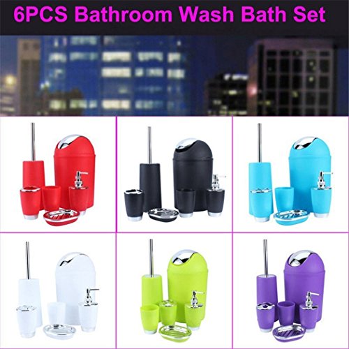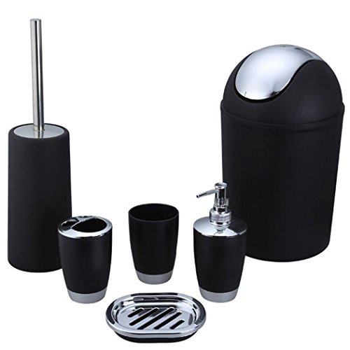 6 Piece Bathroom Accessories Set,Plastic Bath Ensemble Bath Set Lotion Bottles, Toothbrush Holder, Tooth Mug, Soap Dish, Toilet Brush, Trash Can (black)