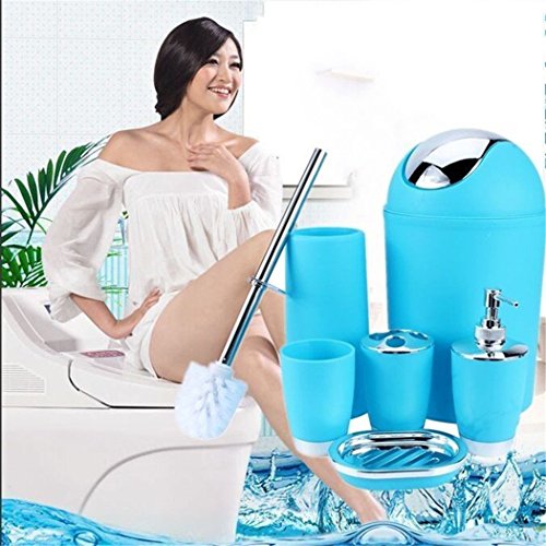 - CAPACITY: Lotion bottle: 7.5*17cm, Gargle cup: 7.5*11cm, Toothbrush cup: 7.5*11.5cm, Soapbox: 13*9.5*2.5cm, Trash: 19*32cm, Toilet Brush: 9*20.8cm