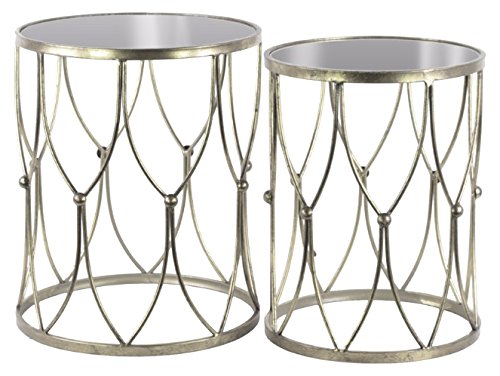 Benzara Nesting Accent Table with Beads and Curves Design Set of Two-Silver