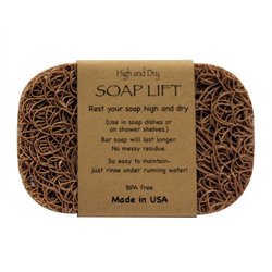 -. Feature : Soap Lift is made of a multi-directional bioplastic that allows water to drain and air to circulate. / Cleans remarkably well by simply holding it under running water and giving it a few squeezes. / Can be trimmed to fit soap dishes / if necessary. / Note: soaps not included