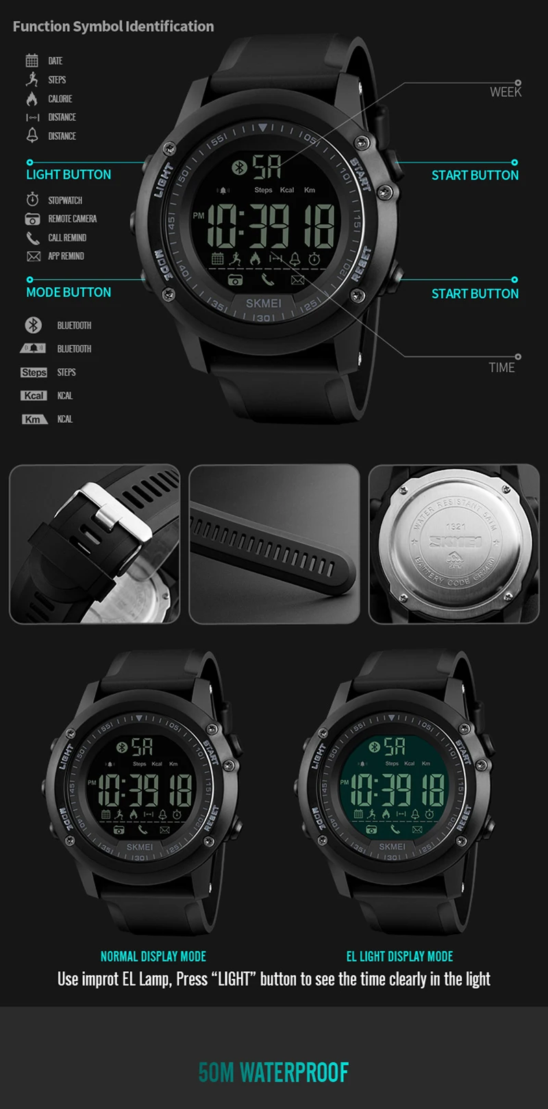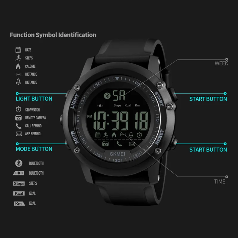 Feature:Chronograph,Bluetooth,Week Display,Message Reminder,Call Reminder,Complete Calendar,LED display,Shock Resistant,Back Light
