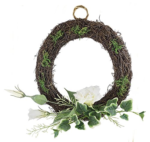 - Features a vine based wreath with artificial Lisianthus flowers, ivy & moss
