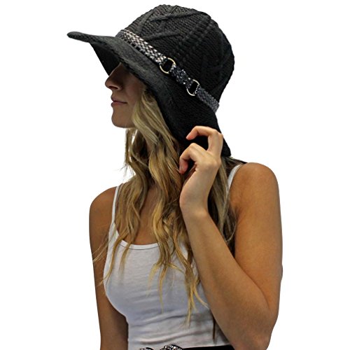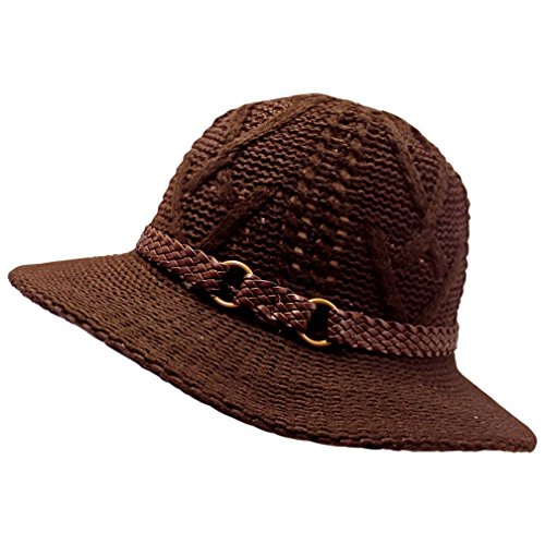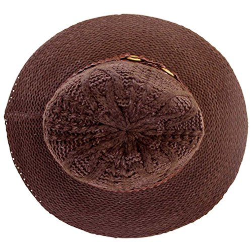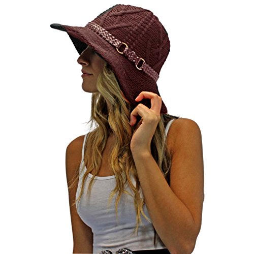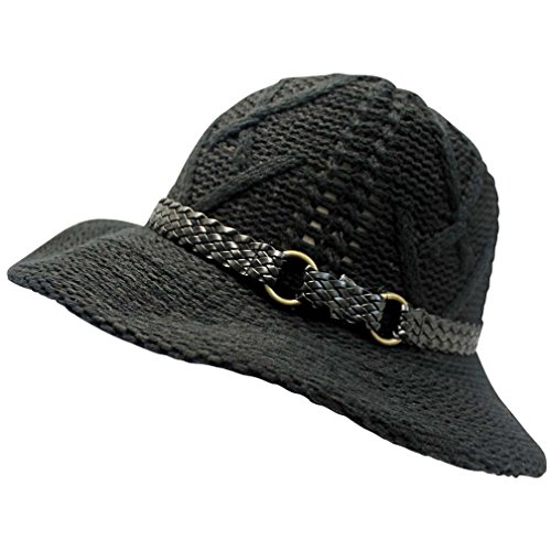 -. Feature : Thick Knit Brim & Cable Knit Crown Fedora / Braided Hatband With Antique Gold Tone Rings / Adjustable Interior Headband / H03927 H03928