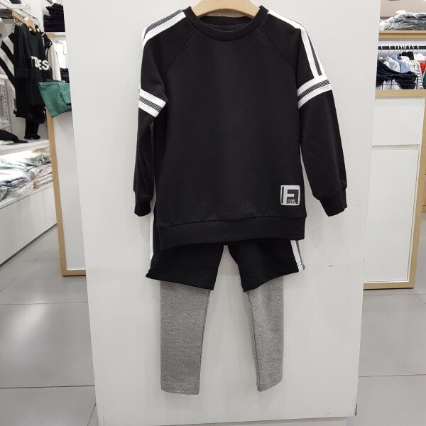 맨투맨 상의와 텐션감 좋은 싱글 스판 레깅스에 미니쭈리 반바지를 레이어드 한 하의의 편안한 상하셋트 아이템입니다