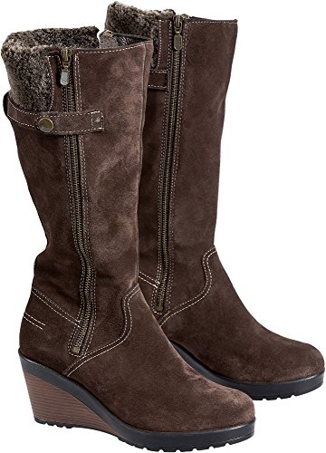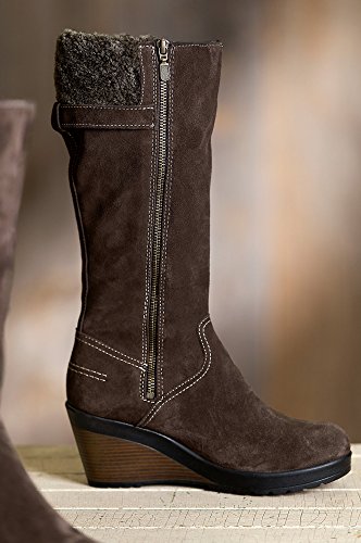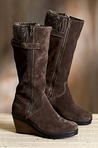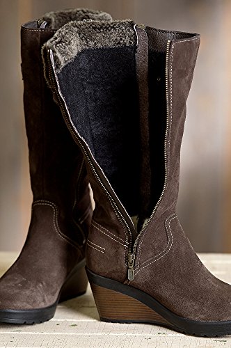 Studio : Overland Sheepskin Co. Publisher : Overland Sheepskin Co. Binding : Apparel Product Description Italian cowhide suede provides waterproof protection in these tall wedge boots. Lambswool lining in the foot delivers warmth and comfort all season long. The moisture-wicking, anit-fungal Amitex lining in the shaft provides warmth in cold weather and keep feet cool in hot weather so your feet remain at a comfortable temperature. Twin full-length zippers - one on each side - make these chic boots so easy to wear. And the retractable anti-slip outsole grips give you confidence in all conditions. - Tall boots in waterproof, seam sealed, Italian cowhide suede