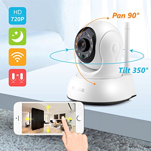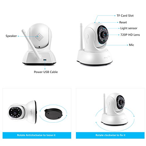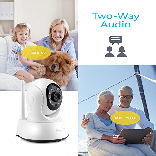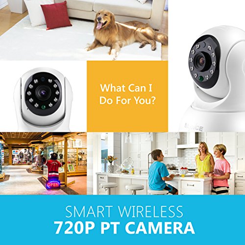 -. Feature : Be There Like You Never Left:Enjoy stunning 720P footage all the time whether you're at home or away on a business trip. Just get your smartphone, tablet or PC and install the free app to achieve live monitoring in seconds / Easy Setup and Control: Getting the camera setup and connected to the Wi-Fi network is as easy as ABC. Place it anywhere in the house and you can start monitoring in no time. All you cared is under reliable spying / A Sweeping View with Pan& Tilt:See more of your house with smooth pan and tilt function. The cameras cover a large field of view with 350°horizontal and 100°vertical rotatable head. And you can control it remotely on your phone / Clear Two-Way Audio:With built-in microphone and speaker, this smart camera enables you to Talk and Listen to your children like you never left even you're thousands of miles away / Motion Detection Alarm Push Notifications:Once unexpected movement is detected by the camera, you'll receive instant alert notification on your mobile devices, so you can check on your house to see what happened in real-time