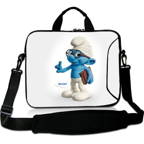 -. Title : Cartoon 10 Inch Laptop Shoulder Bag with Brainy The Smurfs(Both Sides)Patterns Waterproof Canvas Fabric for 10 10.1 Inch Laptop
