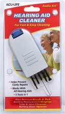 -. Feature : Contains the 5 tools needed for fast, easy and effective daily hearing aid cleaning and maintenance / The 5 tools are built into a lightweight comfortable holder resembling a cellular phone for convenience and ease of use / The holder includes a battery storage compartment also / Tools included are a wax removal brush, a wax removal pick, a tube vent cleaner, a hearing aid battery door opener and battery magnet
