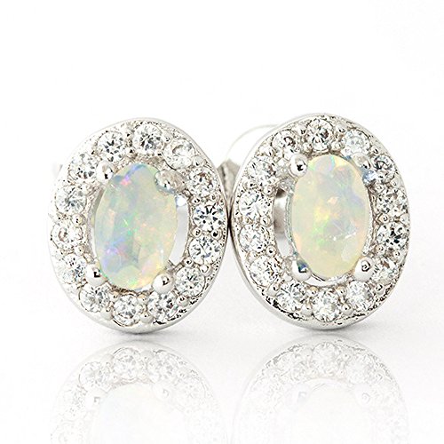 -. Title : One&Only Jewellery 【鑑別書付】 計0.6ct 天然 オパール 取り巻き ピアス イヤリング K18GP ホワイトゴールド 10月誕生石