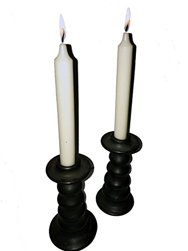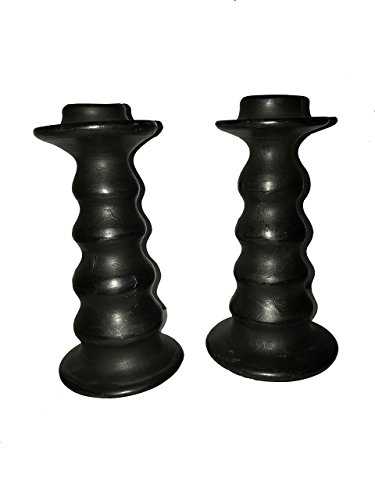 Studio : Magoceram SRL Publisher : Magoceram SRL Binding : Kitchen Product Description The dimensions of the candlesticks are: height of 6.10 in (15.5 cm) and diameter of 3.15 in (8.0 cm), being very light. The candlesticks are obtained from black clay trough a burning process using pinewood, in an oxygen-free environment for a nice raw aspect. Modeling is done manually by craftsmen in a small workshop without molds or forms, each final product being an unique piece. Made of 100% natural unglazed clay for a raw finish aspect. Beautiful decorative pieces with natural unfinished aspect. In the package you get 2 free candles for a complete experience and immediate use. Completely safe and non-toxic. 0