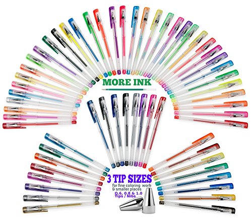 -. Feature : BECOME AN ARTIST - smooth flowing gel ink perfect high-tech gel pens for all your gel ink projects / MORE INK, 3 TIP SIZES - more ink lasts longer to color those small and large areas with 3 tip sizes / NON-TOXIC ACID FREE NO ODOR - relax with Gel Pens made of superior quality gel ink with high end components / NO REPEAT Colors - metallic, glitter, neon, swirls pastels and classic, Gel Ink Pens / MANUFACTURER GUARANTEE - start planning your adult coloring books with our peace of mind replacement