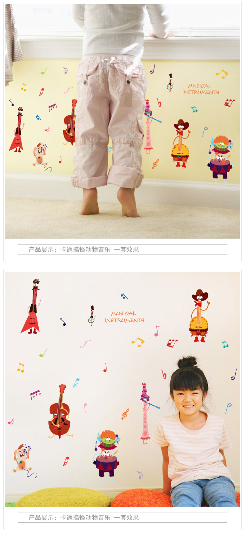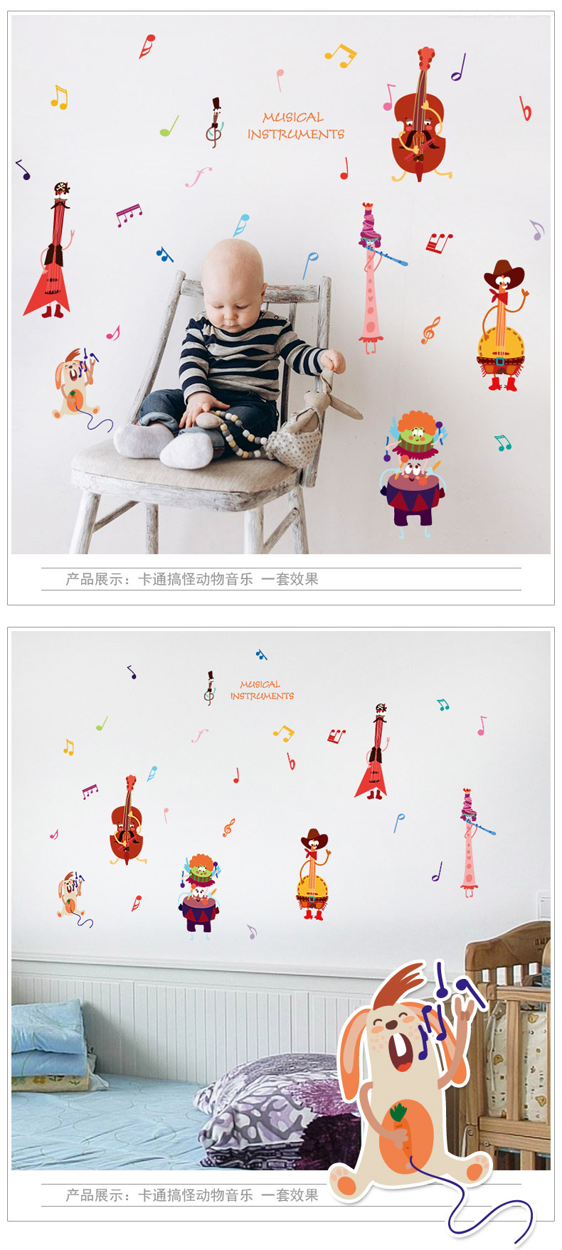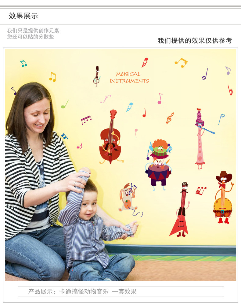音乐动物幼儿园墙壁装饰墙纸贴画儿童卧室宝宝婴儿房间早教墙贴纸