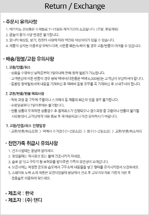 * 사이즈가 품절시에나 그 외 사이즈는 제작이 가능하며 약 7~15일 소요됩니다.