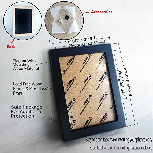 -. Feature : ♥ HIGHEST QUALITY MATERIAL : Made of pine wood, fine, smooth with beautiful lines, moderate weight for 0.78 inch thickness picture frames; the 0.03 inch plexiglass front preserves and protects your picture / ♥ ELEGANT DESIGN : Classic elegant Wood frame with hand polished right angle edges, crafted for style, quality, and durability / ♥ EASY TO MOUNT : Our highly durable pic frames come complete with secure hanging hardware for installation convenience and vertical or horizontal wall display / ♥ ENHANCE YOUR HOME : Turn your posed portraits, artful P.R.Ints and everyday shots into a spectacular and cherished memories display / ♥ POPULAR SIZE : 8x10 wood picture frame for 5x7 picture with mat or 8x10 without mat, 5x7 wood picture frame for 4x6 picture with mat or 5x7 without mat