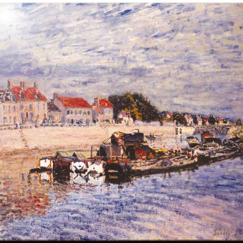 Rikki Knight RK-12intilec-3655 12" X 12" Alfred Sisley Art Barges on The Loing Design Ceramic Art Tile