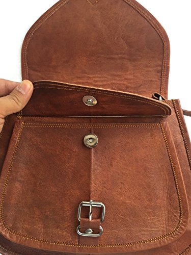 100% genuine goat leather with velvet lining and antique look accessories....... Size 10" width x 7" height x 3.5" depth......... Well suited to carry mobiles, cash, vanity items and other personal belongings etc.......... Genuine handmade product made from chemical and dye free leather. Veg tanning using natural edible oil and Sun tanning used for obtaining shades. Bag gives a wonderfully unique and antique look with use......... A perfect companion and gift for your close ones.Feature