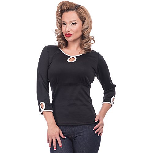 Studio : Steady Clothing Publisher : Steady Clothing Binding : Apparel Product Description Charm Me Keyhole Top Women's Black/Ivory By Steady Clothing. Charm your way into any heart with Steady's Charm Me Keyhole Top! This top features a center teardrop cutout and two teardrop cutouts on each 3/4 sleeve. Each cutout is made in a contrast piping. Pair it with your favorite Steady high waist skirts and pants! Made in the USA. 75% Polyester, 23% Rayon, 3% Spandex. 0