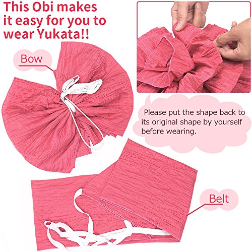 Product Description This is an elegant Obi(belt) for Yukata and kimono. It has already been tie, so even kimono beginners can easily use it. In Japan, women are wearing yukata with this obi in the summer festivals and they are very popular! We have vivid colors and calm colors, so please choose your favorite color according to yukata. *When it arrive he shape might be little flattened but that is not a defective product. Please put the shape back to its original shape by yourself before wearing.